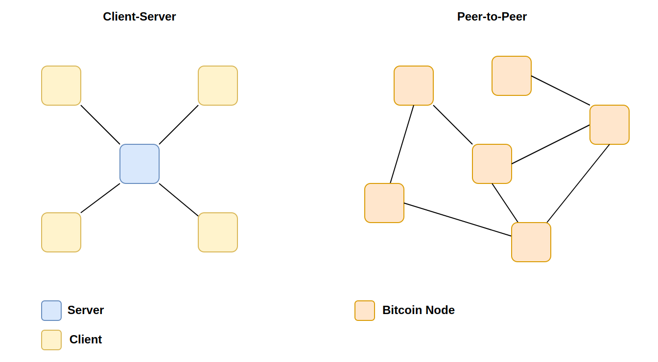 In order to support permissionless, trustless, and uncensorable money for the internet, Bitcoin uses a peer-to-peer network architecture, where each participant is equipotent on the network.